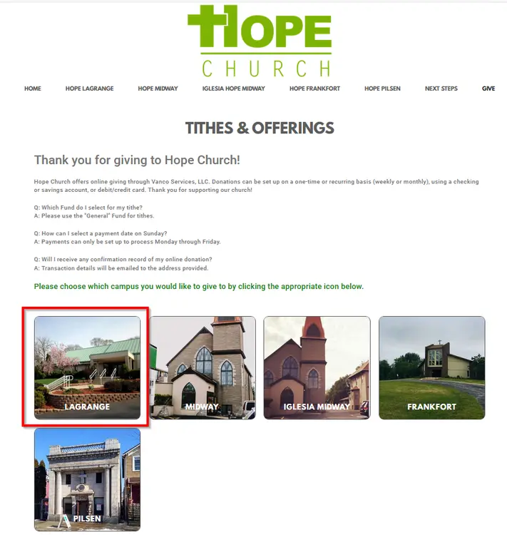 When you go to their site at this link : https://www.hopechicago.church/give you will see this page: